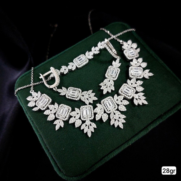سرویس نقره زنانه جواهری امرالد کات لوکس مدل A 124 | کالکشن عروس - سنگین و مجلل