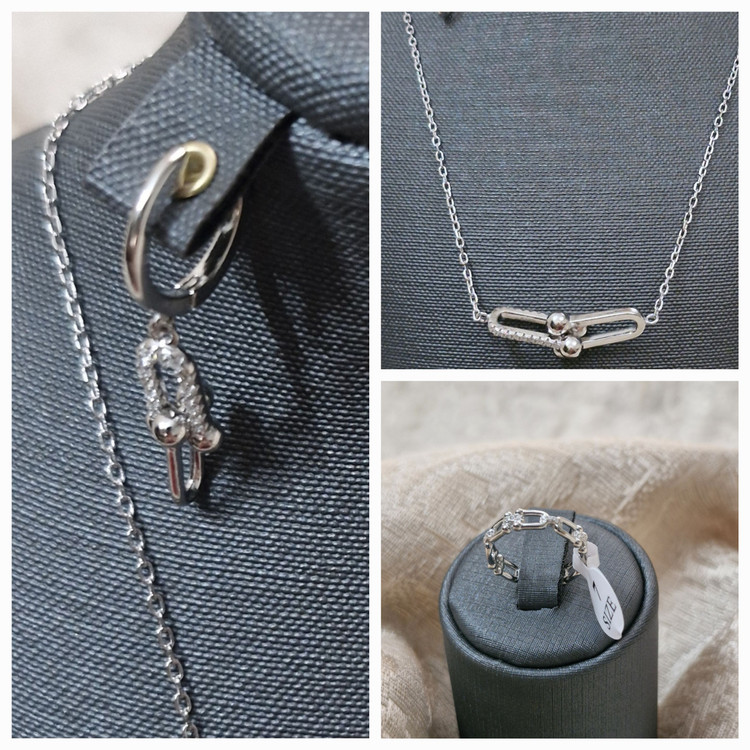 نیم ست نقره زنانه وارداتی مدل تیفانی متصل به زنجیر از کالکشن تیفانی کد B119