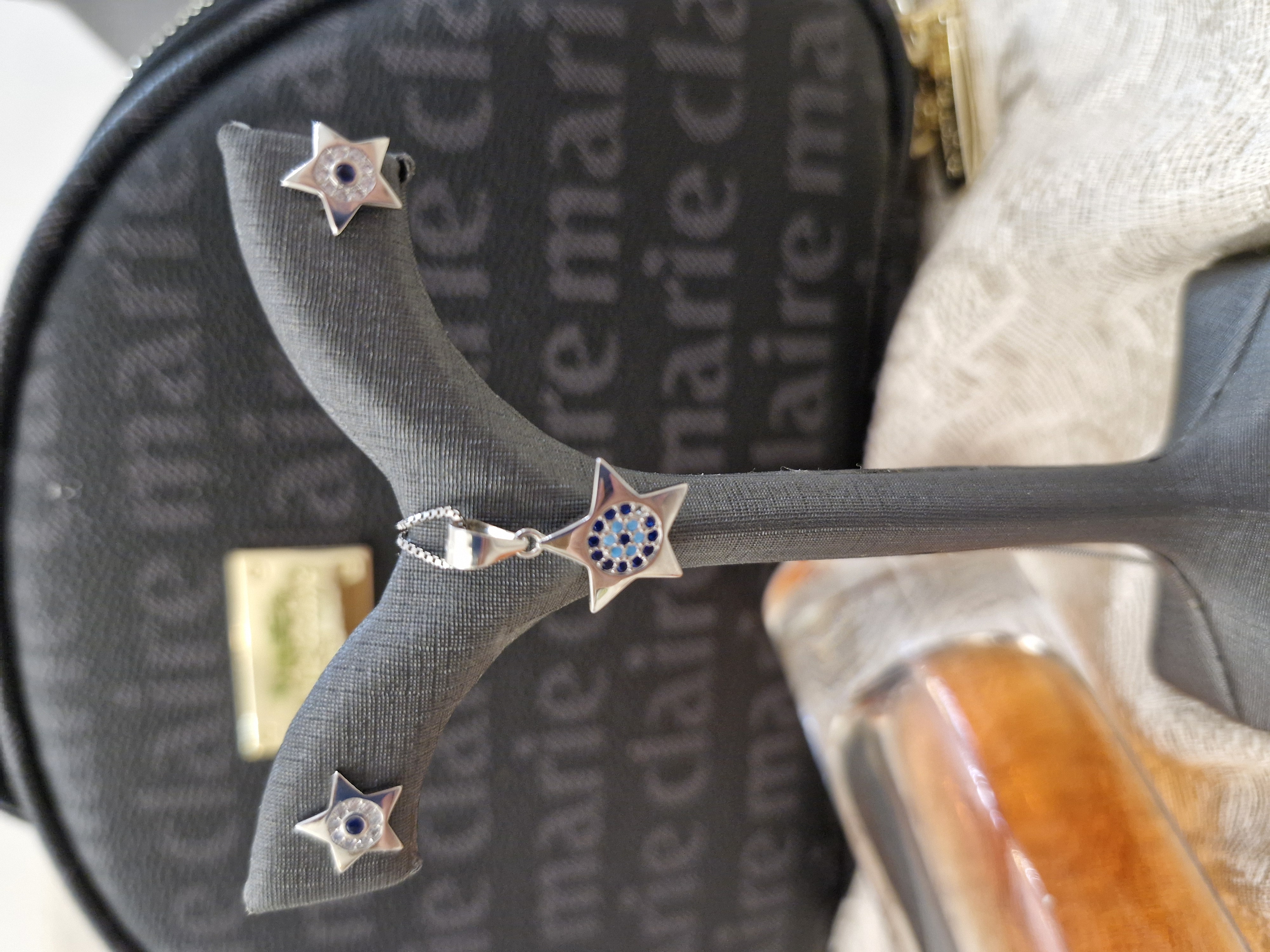 طرح: نیم ست نقره زنانه مینیمال وارداتی مدل چشم و نظر ستاره از کالکشن مهتاب کد B121