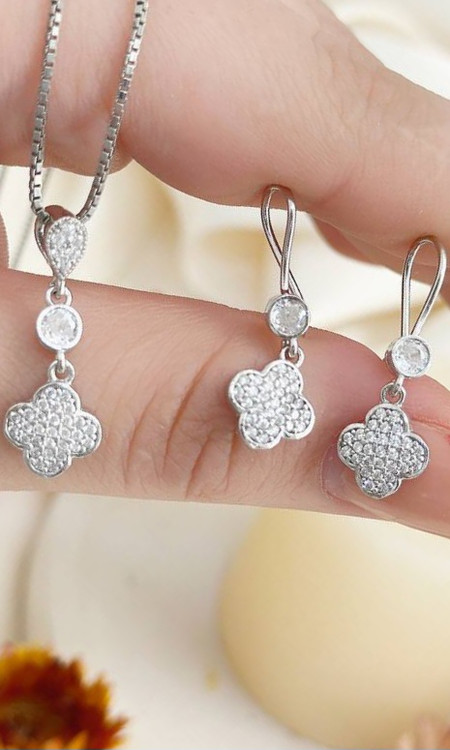 نیم ست ونکلیف نقره زنانه مینیمال از کالکشن فلورا کد B126