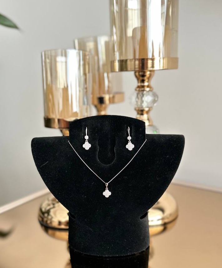 نیم ست ونکلیف نقره زنانه مینیمال از کالکشن فلورا کد B126