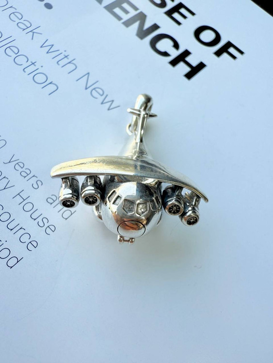 پلاک نقره زنانه تایلندی سیاه قلم سه بعدی برجسته طرح هواپیما کد G۱۴۰