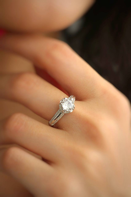 طرح: انگشتر نقره زنانه سولیتر(تک نگین) وارداتی | کالکشن تینا کد E۱۳۳