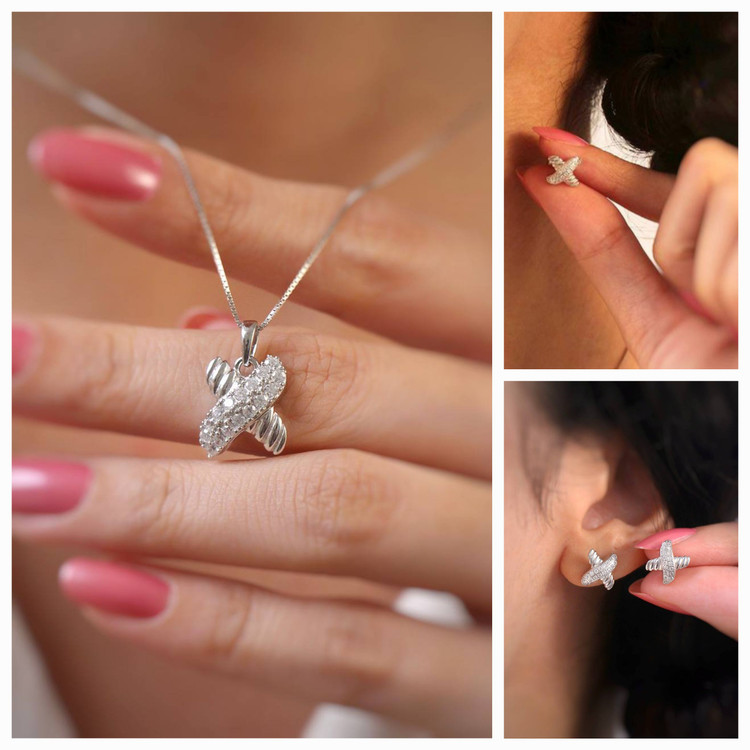 نیم ست نقره زنانه وارداتی کالکشن تینا کد B۱۴۳