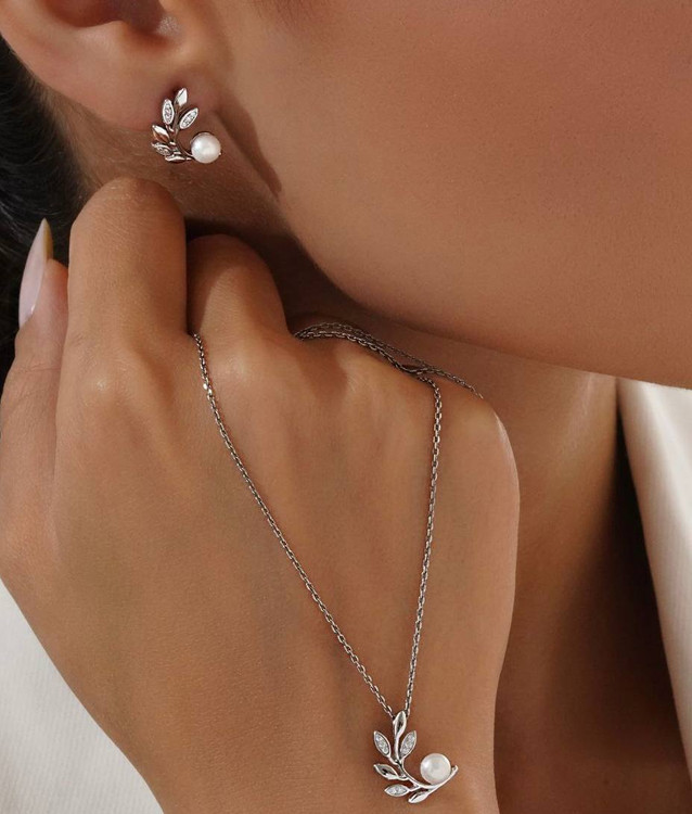 نیم ست نقره زنانه مروارید پرورشی وارداتی کالکشن فرا کد B۱۵۳