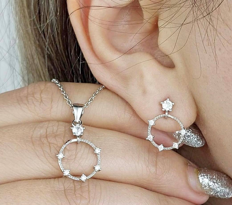 نیم ست نقره زنانه دایره نگین دار وارداتی کالکشن فرا کد B۱۵۵