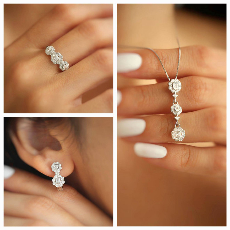 نیم ست نقره زنانه فلاور وارداتی کالکشن تینا کد B۱۶۰