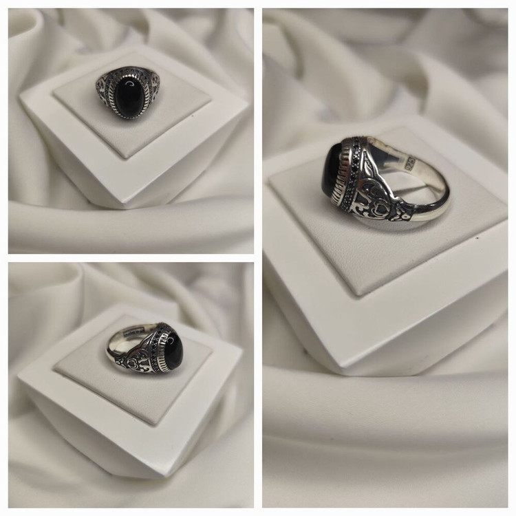 عقیق سیاه نماد آرامش ، تمرکز و استقامت درونی .این نگین در رکابی هنرمندانه از نقره سیاه قلم ، تلفیقی از زیبایی و انرژی معنوی را به همراه دارد.