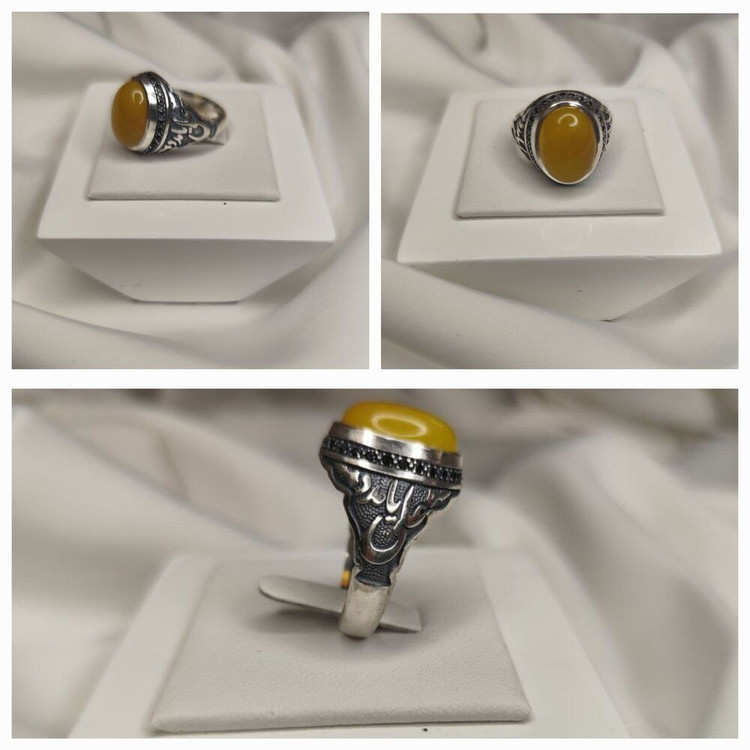 انگشتر نقره مردانه با نگین شرف الشمس اصل ، حکاکی شده در ساعات سعد.سنگی با انرژی مثبت و برکت الهی همراه با رکاب فاخر سیاه قلم مزین به نام مولا علی (ع)