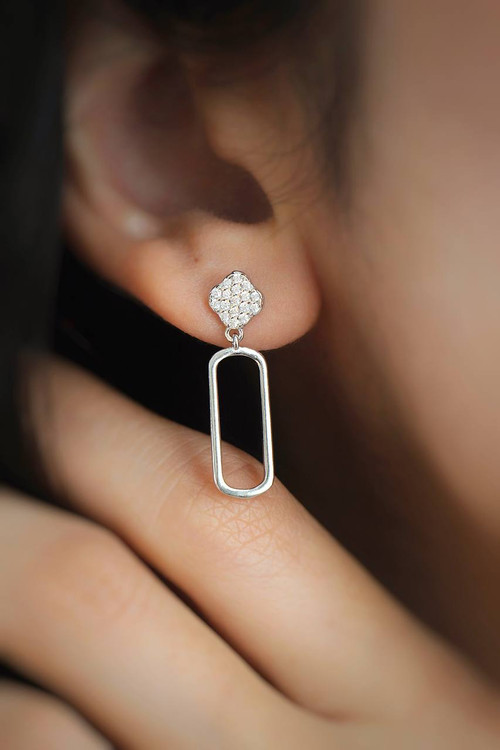 نیم ست نقره زنانه وارداتی مدل ونکلیف مدرن از کالکشن فلورا کد B